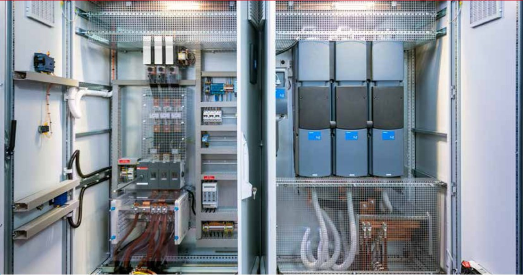 1941年起,Buma泵站與位于東側的Smeenge泵一起為荷蘭東北部圩田的排水發(fā)揮著重要的作用。時至今日,Buma泵站依舊是圩田水位管理的重要組成部分。該泵站配備三臺大型垂直離心泵,每臺泵的最大流速為750立方米/分鐘,泵頭為5.6米。每臺泵由850kW的三相感應電機驅動。當前的泵和690V變速電機由西班牙制造商Alconza出品,自2006年開啟使用。隨著時間的推移,變頻器的故障逐漸增多,甚至出現(xiàn)備件難以獲得的情況。為了確保泵的持續(xù)可用性,2018年去水務局決定對現(xiàn)有的變頻器進行更換。