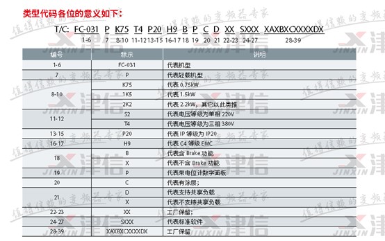 丹佛斯FC31變頻器型號描述含義如下