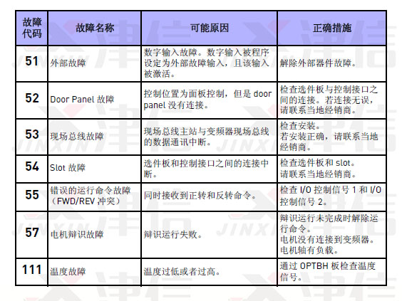 4、偉肯變頻器故障代碼51,52,53,54,55,57,111以上