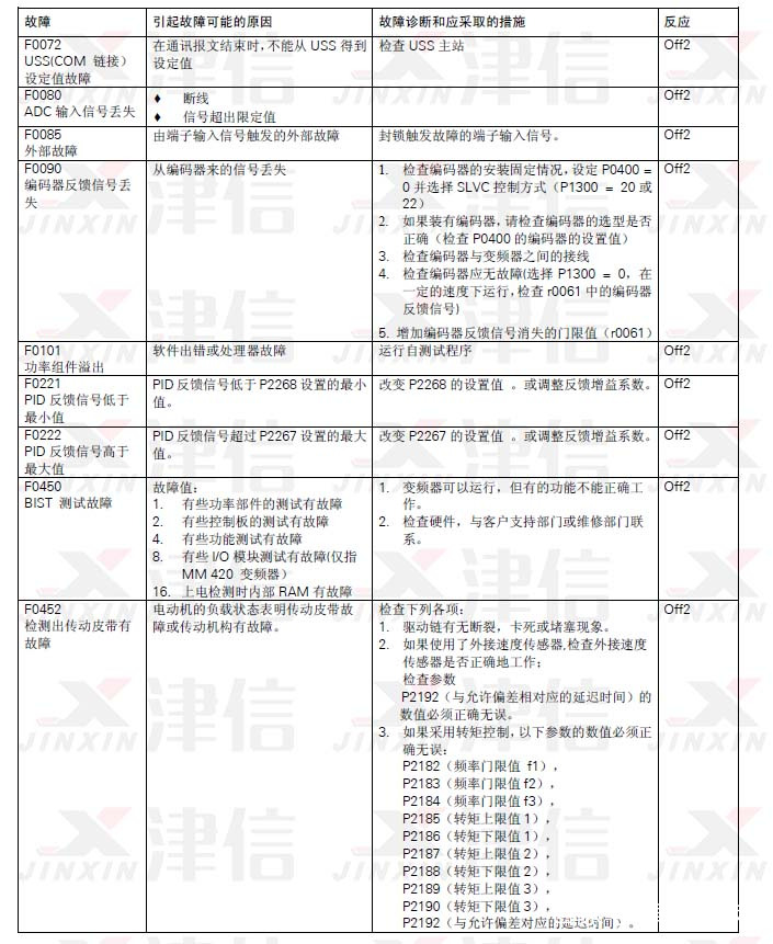 西門子變頻器在發生故障時,會在LED顯示屏上出現故障代碼,故障代碼是以F開頭的5位數表示,F代表Fault。